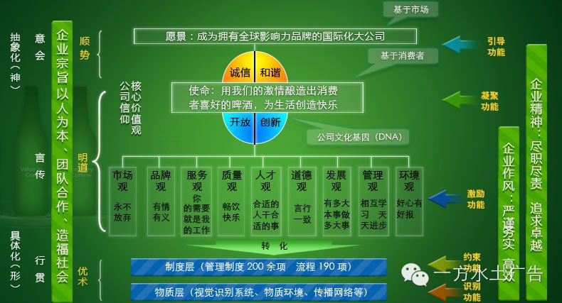 青岛啤酒的愿景是成为“拥有全球影响力品牌的国际化大公司”。青岛啤酒已经实现了市场、品牌和资本运作的国际化。