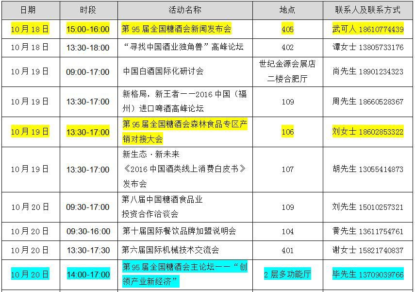 第95届全国糖酒商品交易会主要活动如下: